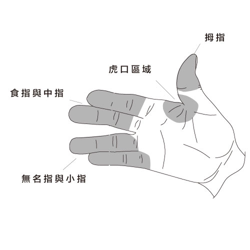 - 虎口區域:用於穩定並夾持定筷,確保在操作過程中定筷不會脫離虎口下方的支撐點。